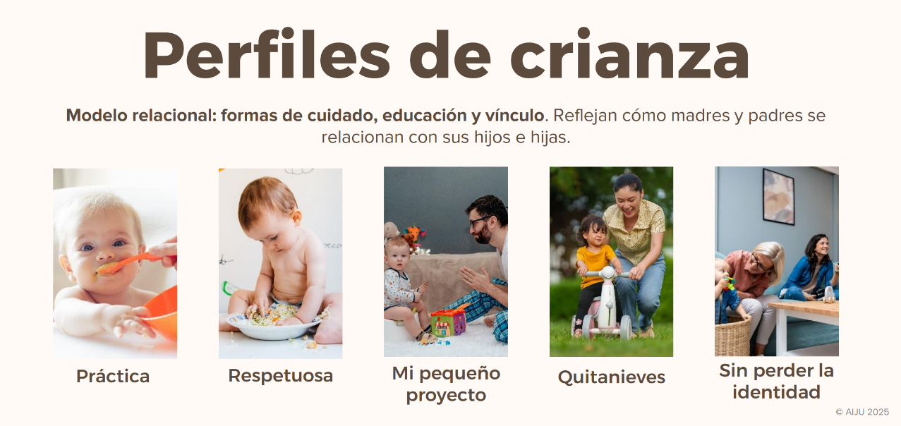 This research, conducted with more than 1,000 families with babies aged 0 to 36 months, has identified five parenting profiles that provide insight into different relational models, i.e., forms of care, education, and emotional bonding. These profiles allow us to investigate how mothers and fathers relate to their children on a daily basis. Thus, 26% of families adopt a “Crianza Práctica” approach, prioritising functionality, and daily adaptation, while 20% opt for “Crianza Respetuosa”, accompanying the baby’s natural rhythm. Nineteen per cent experience motherhood or fatherhood as “Mi pequeño Proyecto”, getting involved in maximising their child’s development; 18% identify with the “Quitanieves” profile, focusing their decisions on absolute protection; and 17% prefer the “Sin perder la identidad” style, seeking solutions that allow them to maintain their individuality alongside their role as parents.