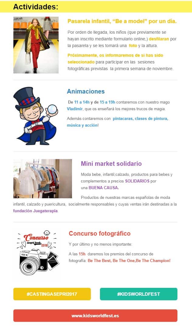 El próximo 21 de Octubre , en el Mercado de Colón de Valencia, de 10 a 19h , celebramos nuestro primer festival lleno de actividades lúdicas encaminadas a poner en práctica los valores de KIDSWORLD FEST: deporte , buena alimentación y talento. Queremos que todos los niños persigan sus sueños. Esperamos a 700 familias!!