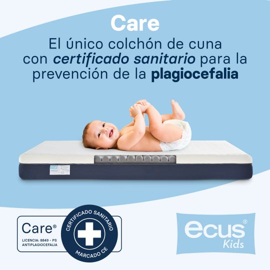 Los colchones de bebé Care son los únicos con certificado sanitario para la prevención de la plagiocefalia y la asfixia. Su topper permite reducir hasta un 70 % la presión ejercida sobre la cabeza del bebé. Perfecto para practicar colecho.